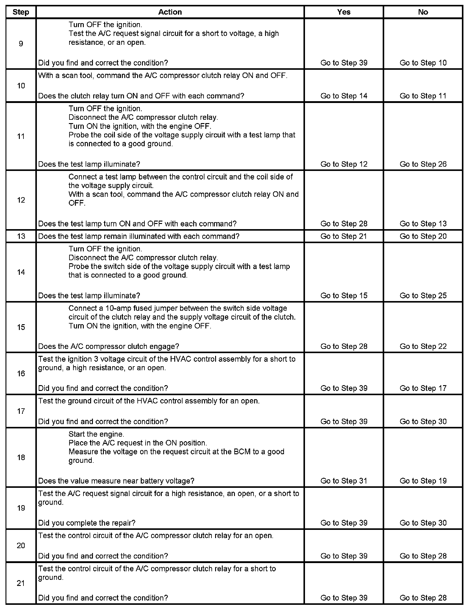 The numbers below refer to the step numbers on the diagnostic table.