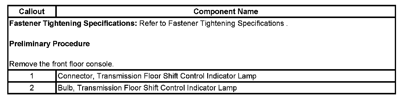 TRANSMISSION FLOOR SHIFT CONTROL INDICATOR LAMP REPLACEMENT