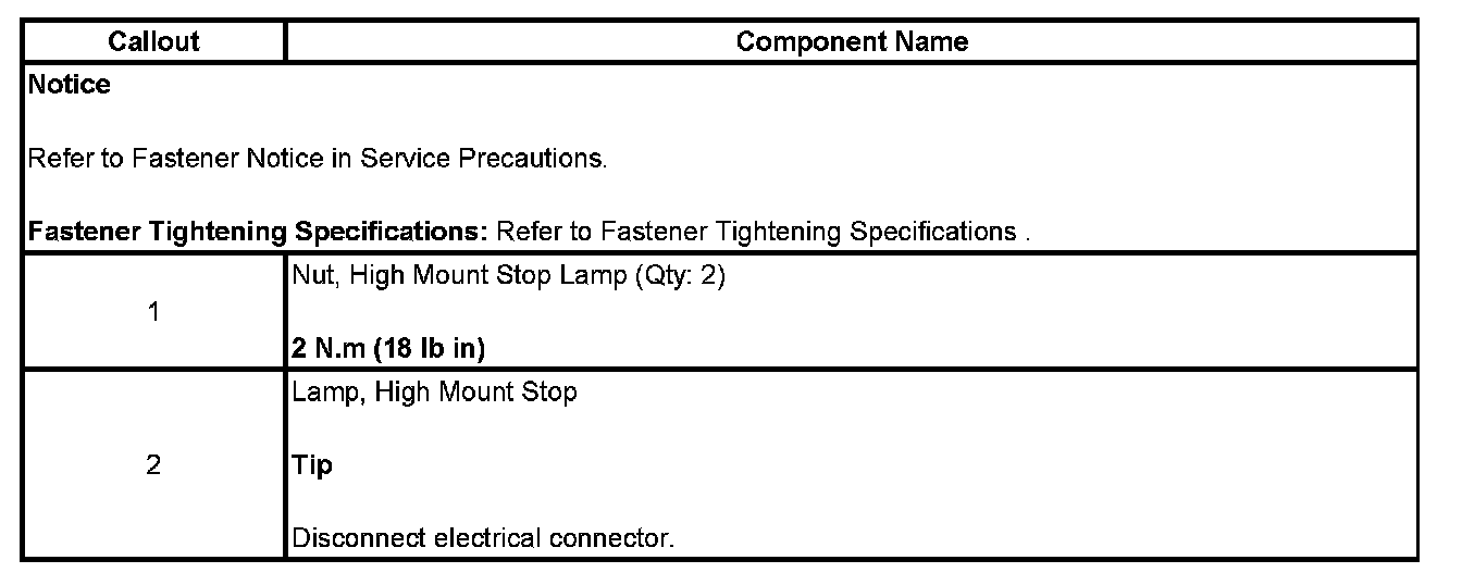 Center Mounted Brake Lamp: Service and Repair
