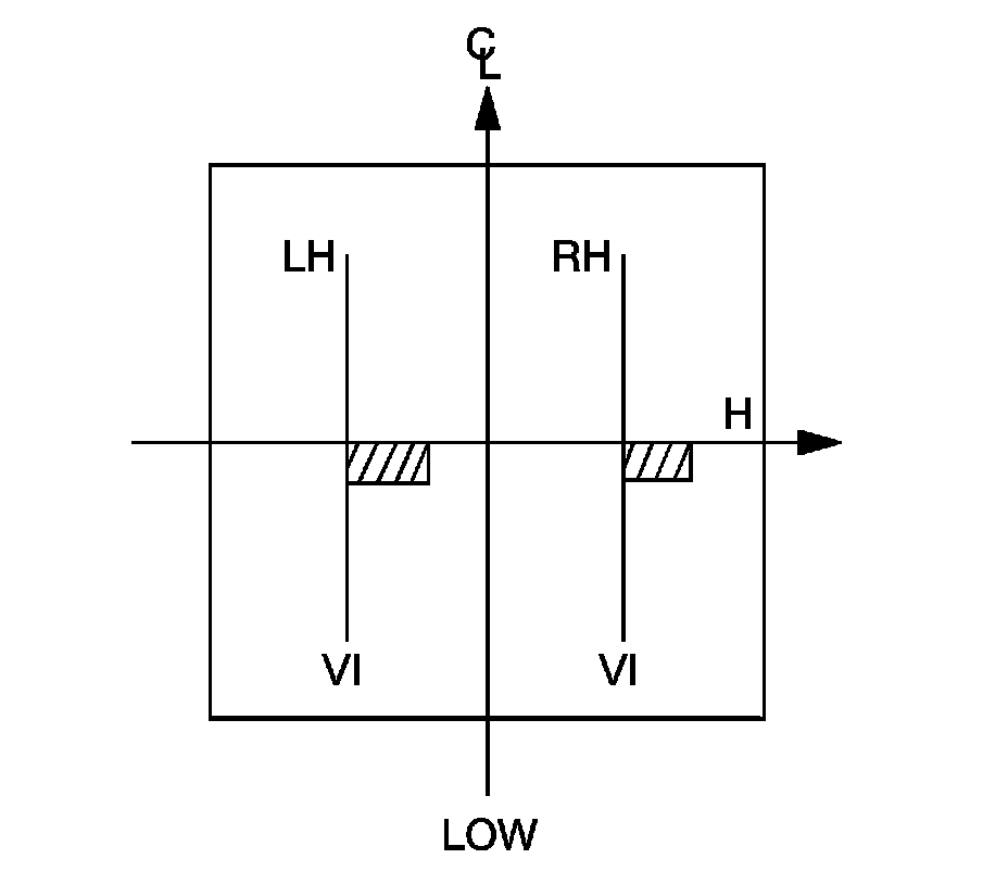 12. Turn ON the headlamps to low beam and observe the left and the top edges of the high intensity zone on the screen. The edges of the high intensity zone should fall within the specifications.
