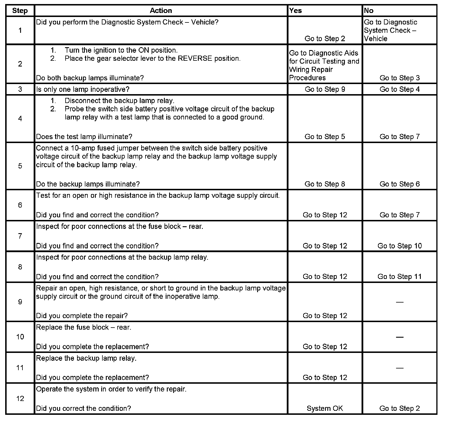Backup Lamps Inoperative