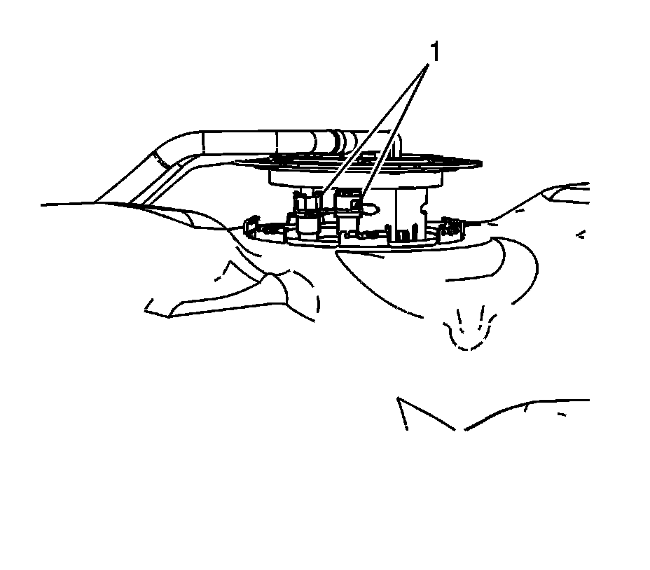 8. Squeeze the sides of the fuel pump fuel reservoir pump fuel strainer quick connect fitting together (1) in order to remove the fitting from the fuel filter. Refer to Plastic Collar Quick Connect Fitting Service.