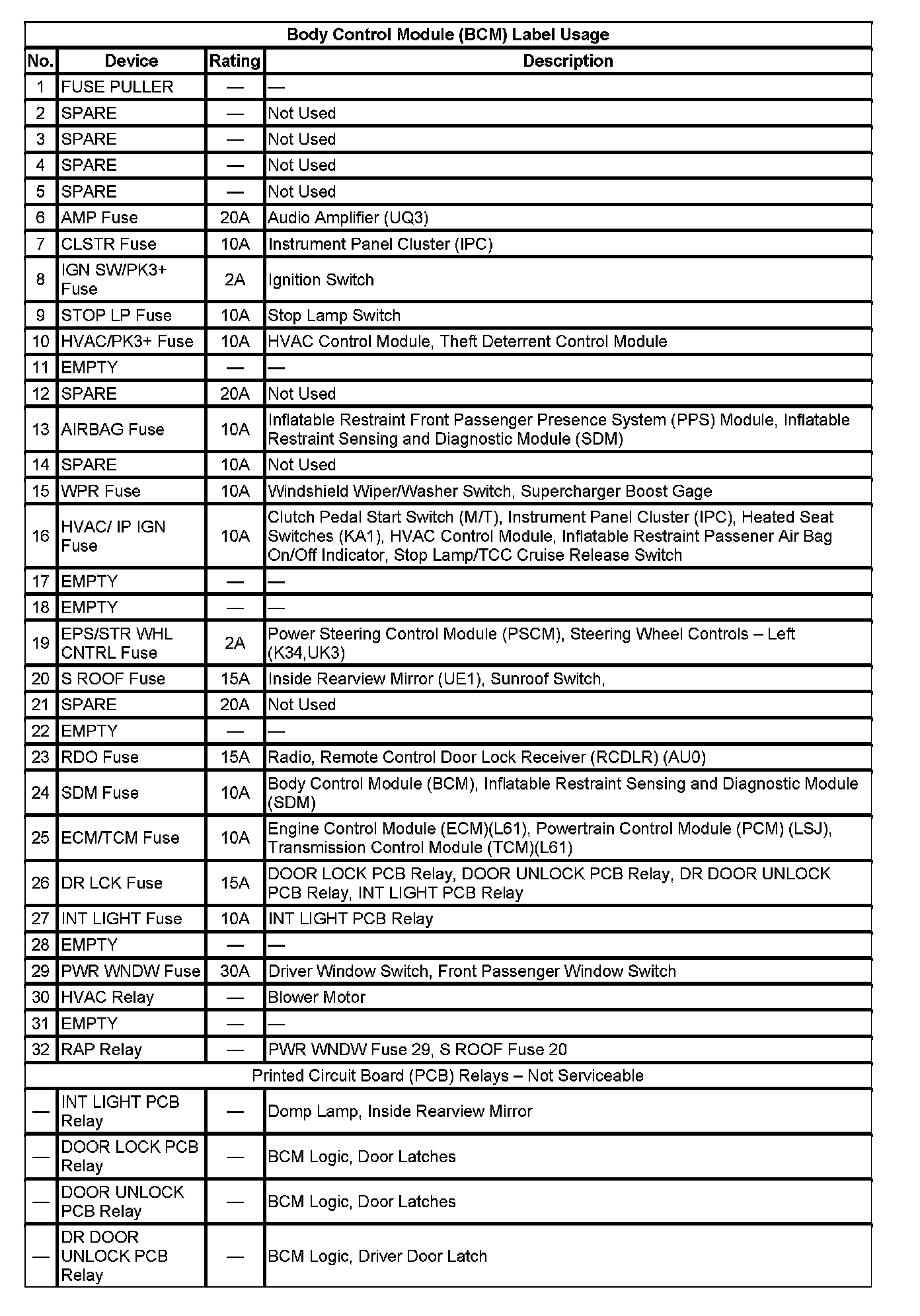 Body Control Module (BCM) Label Usage (Part 2):