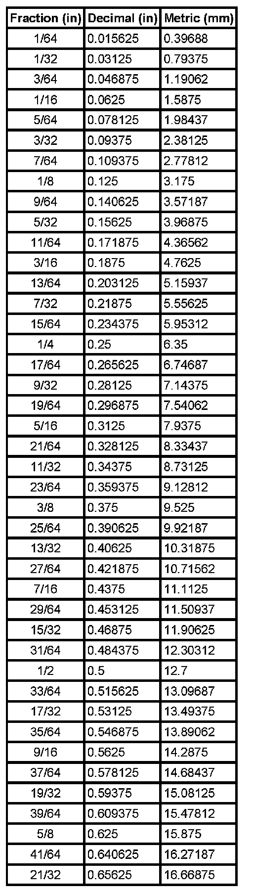 Equivalents - Decimal and Metric