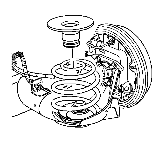 7. Remove the upper spring seat/jounce bumper from the spring, while leaving the lower spring seat on the axle.