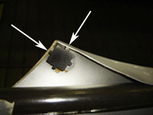 1. If the adjusting screw/washer assembly shows this concave condition, replace the fasteners at all four corners of the sunroof glass with a revised screw/washer assembly, GM P/N 11610784.