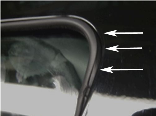 Inspect the perimeter of the rear door fixed glass and ensure that the door glass run channel is correctly seated in the door frame.