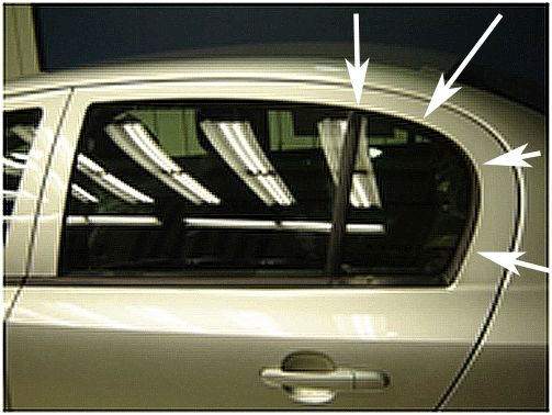 1. Inspect the perimeter of the rear door fixed glass and ensure that the door glass run channel is correctly seated in the door frame.