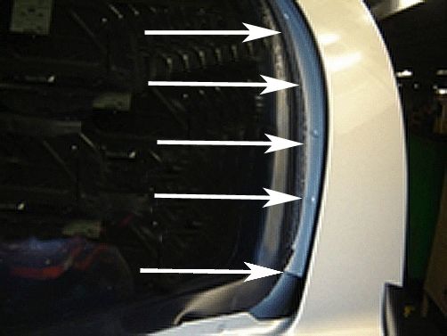 2. If the rattle is coming from that area, remove the fasteners from the upper rear area of the fender as required to allow access to the inside of the upper rear fender. Refer to Front Fender Replacement in SI.