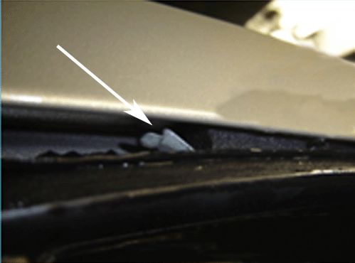 2. If the run channel is correctly seated to the door frame and the noise still exists, the foam seal attached to the run channel in the inner upper front corner may be missing or out of position.