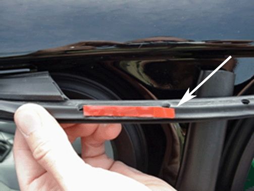 5. Peel the liner from the attachment tape and reinstall the auxiliary weatherstrip.
