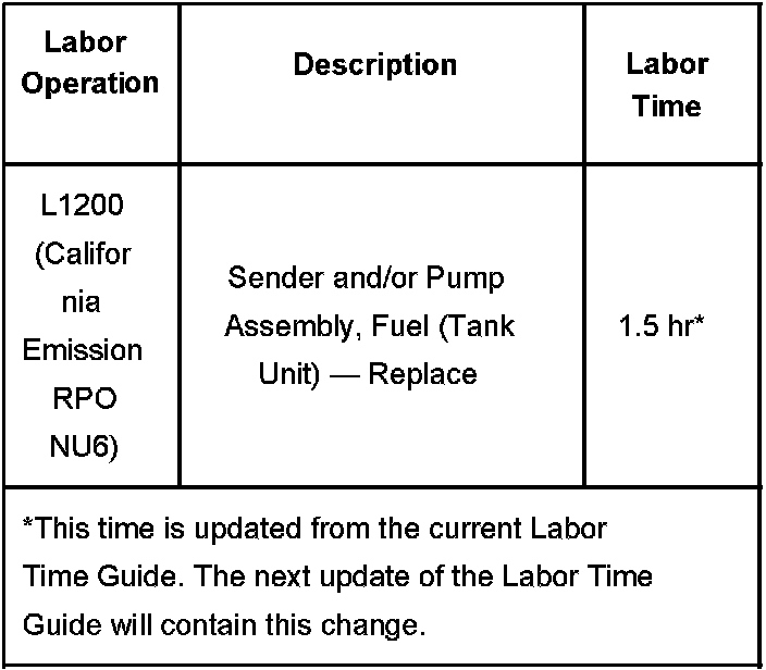 Replace the fuel pump with the pump that is included in service kit, P/N 15947510. Refer to the Fuel Pump Replacement (RPO NU6) procedure in SI.