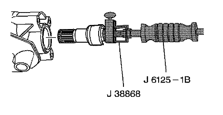 4. Install the J 38868 and J 6125-1B into the stub shaft snap ring groove.