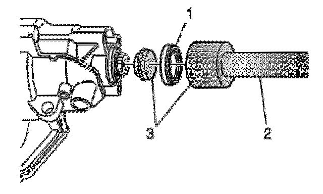 9. Install a NEW seal (1). Use the J 41102-1A (3) with J 8092 (2). Lubricate the seal lip with transmission fluid.