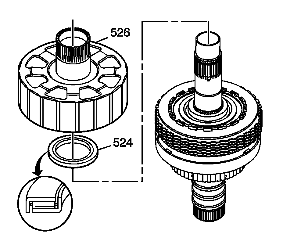 19. Remove the direct clutch piston and seal assembly (518).