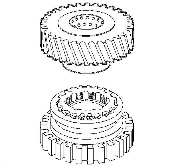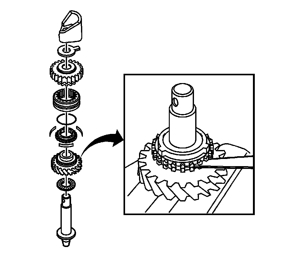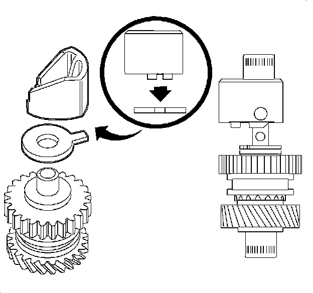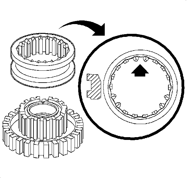 Important: The reverse synchronizer sleeve can only be placed on the reverse gear when the tall teeth on the sleeve are aligned with the deep tooth gaps in the gear.