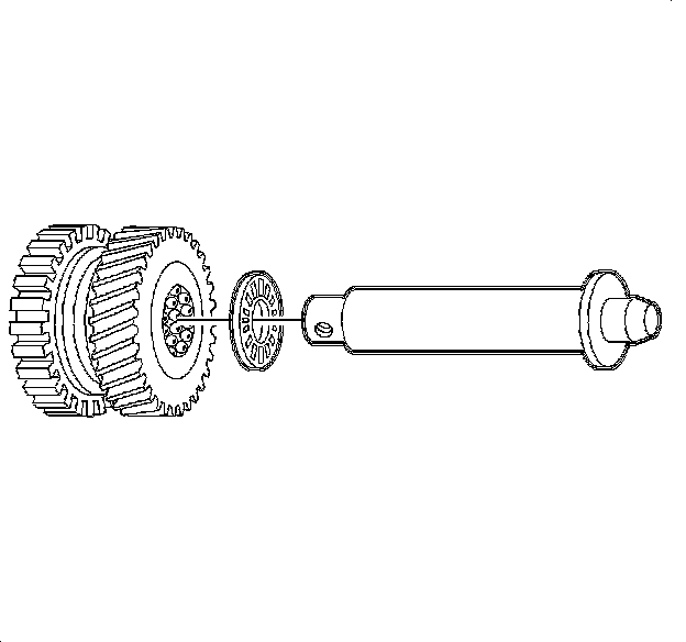 4. Install the reverse idler gear thrust bearing on the reverse idler shaft and install the shaft through the reverse idler and reverse gears.