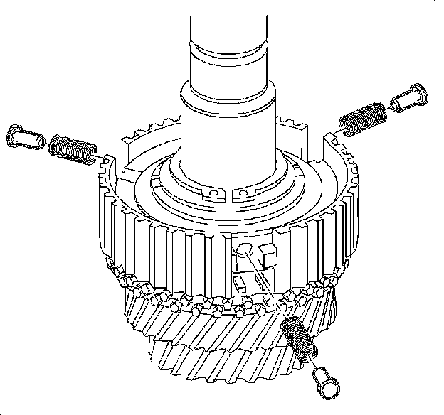 Caution: The synchronizer detent inserts may be forced out by spring pressure and could injure someone. To help avoid injury, always cover the synchronizer hub detent openings during disassembly.
