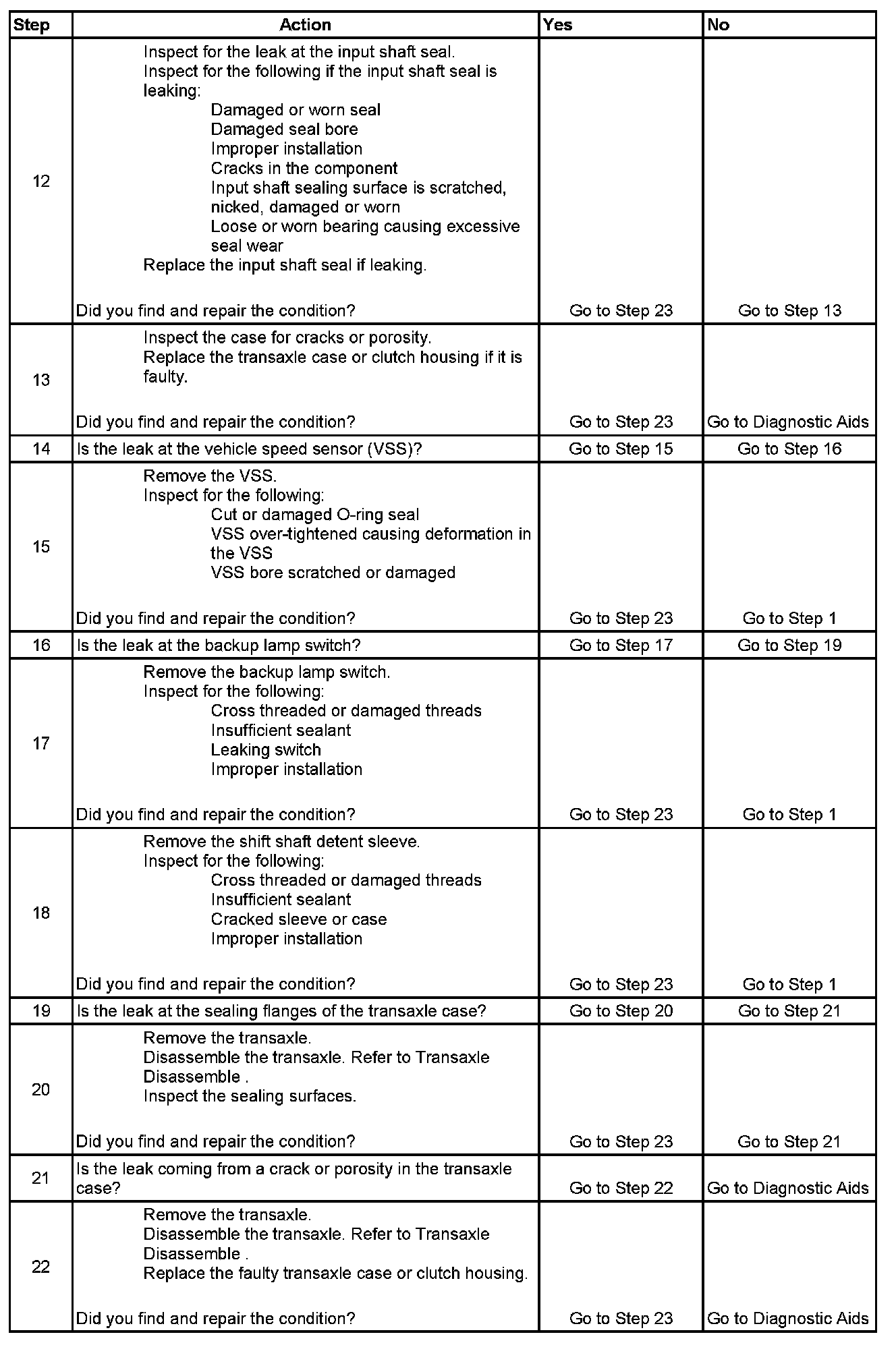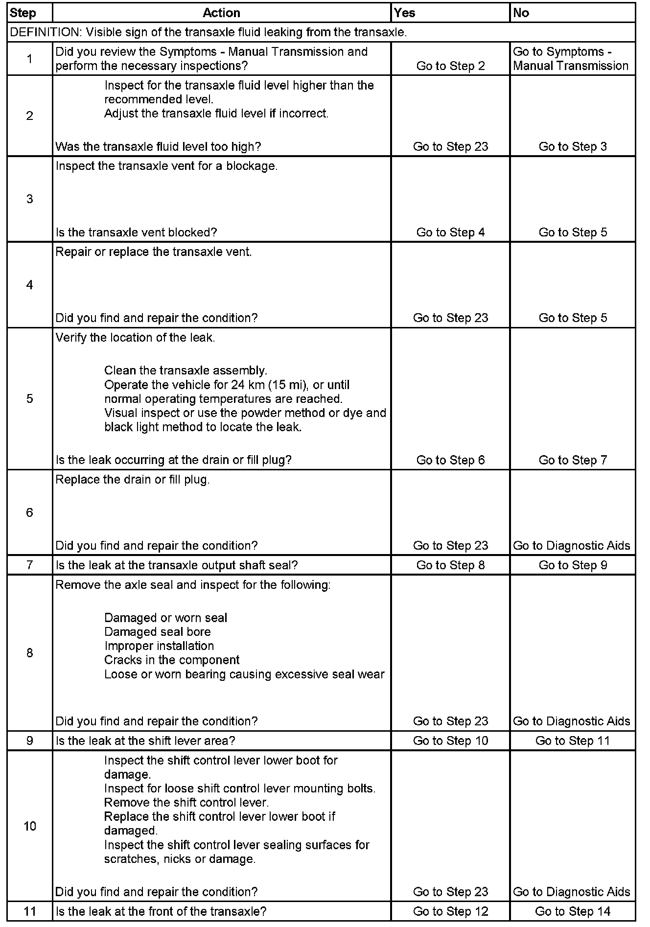 5. Use an approved method to clean the transaxle to ensure the leak location is correctly identified. If using a powder method or dye method, ensure the products are compatible with the transaxle fluid.