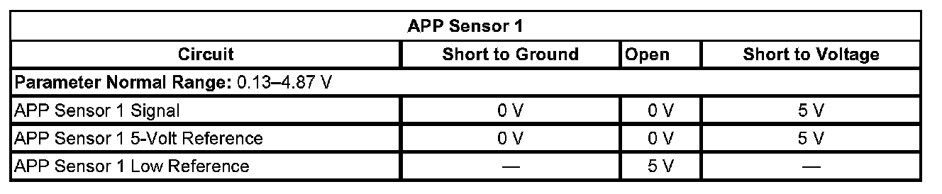 - Accelerator Pedal Position (APP) Sensor 1 Circuit High Voltage