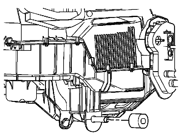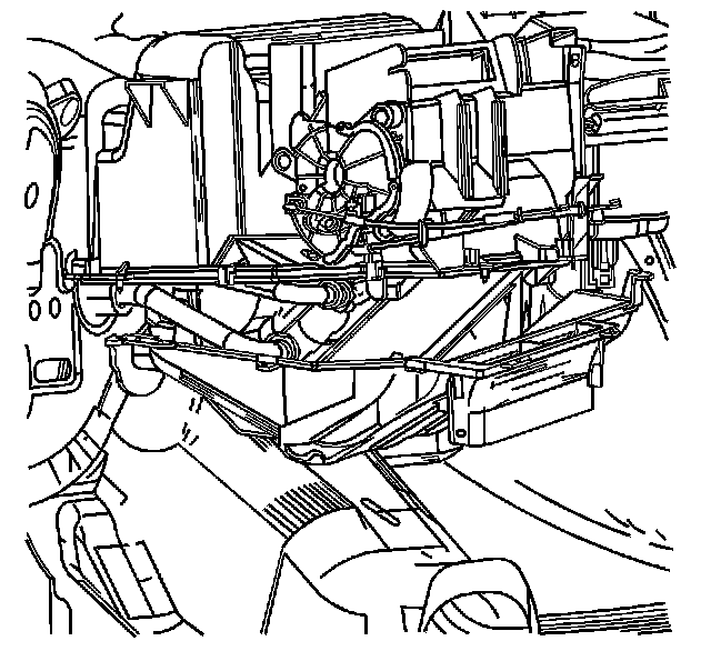 Important: Make certain that all of the heater core cover screws are removed before attempting to remove the heater core cover.