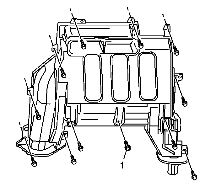 Important: Make certain that the heater core cover is properly positioned and is fully seated on the HVAC module before installing the screws. Be sure to install all heater core cover screws.