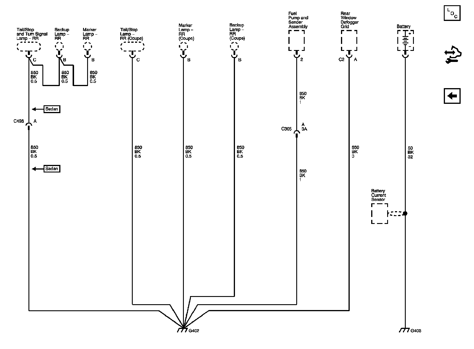 The locations for the Connectors, Grounds, Splices, and Grommets shown within these diagrams can be found via their numbers at Vehicle Locations.