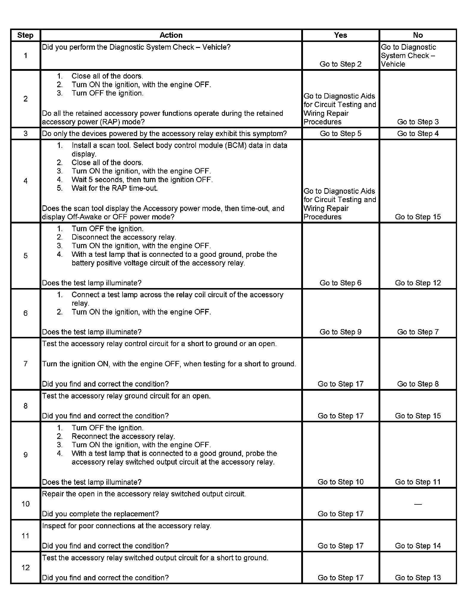Retained Accessory Power (RAP) Inoperative