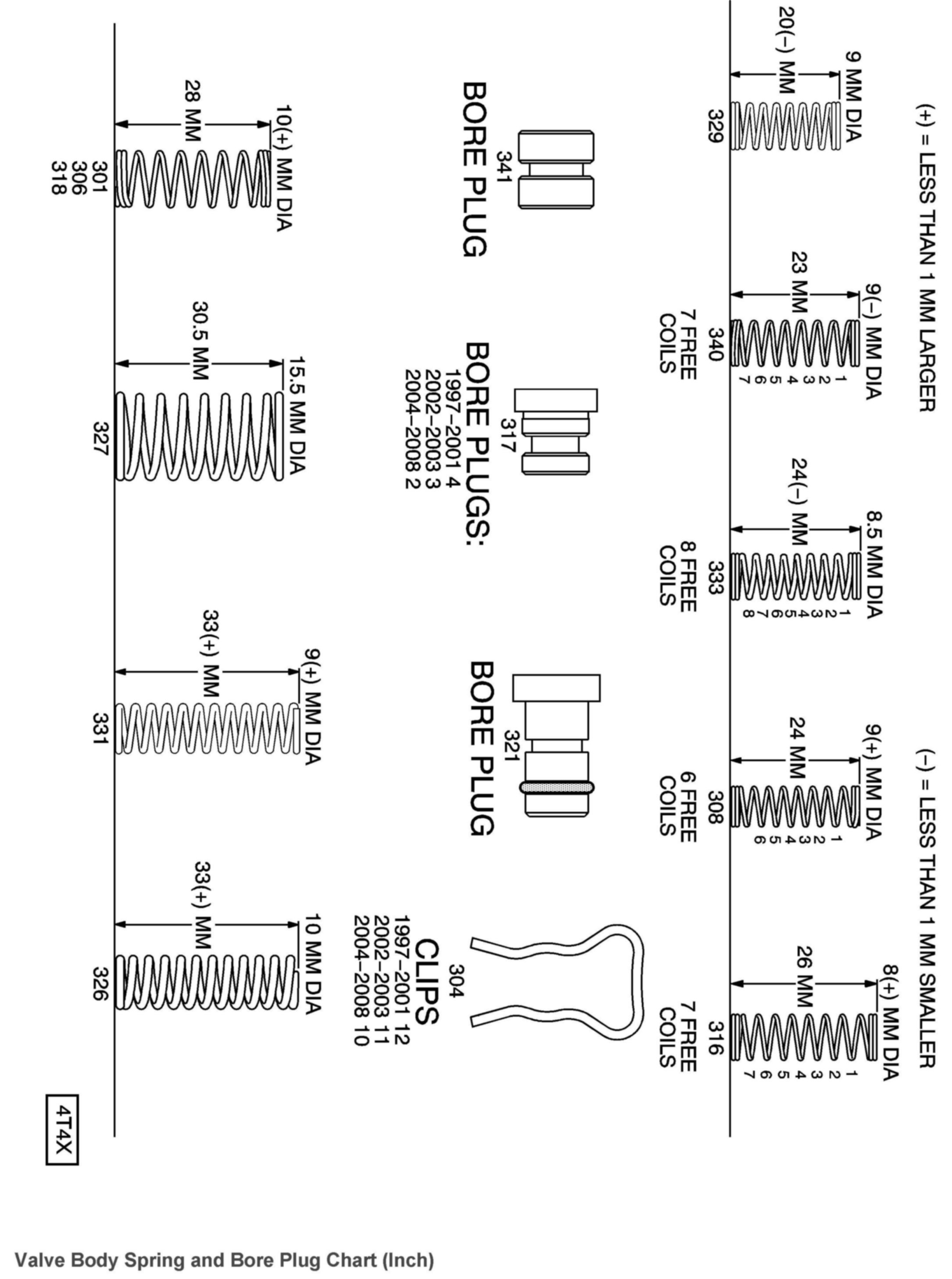 Control Valve Body Assembly Chart, Valve Springs and Bore Plugs
