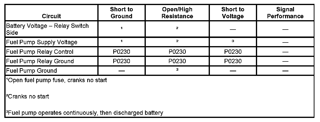 ^ If the fuel pump does not operate, test for an open or high resistance in the supply voltage circuit of the fuel pump, an open or high resistance in the ground circuit of the fuel pump, an intermittent or poor connection at the fuel pump module cover, or a faulty fuel pump module.