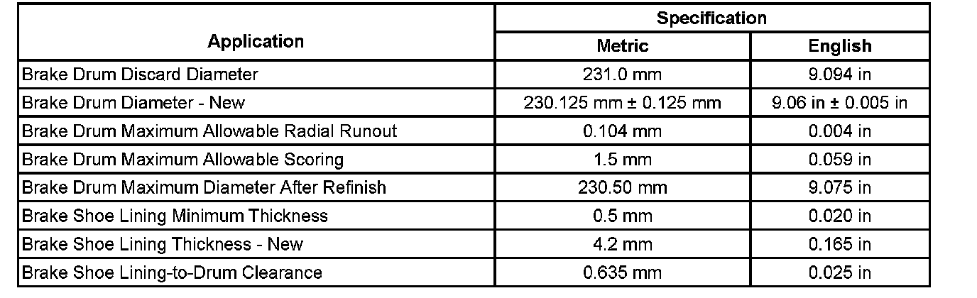 Drum Brake Component Specifications: