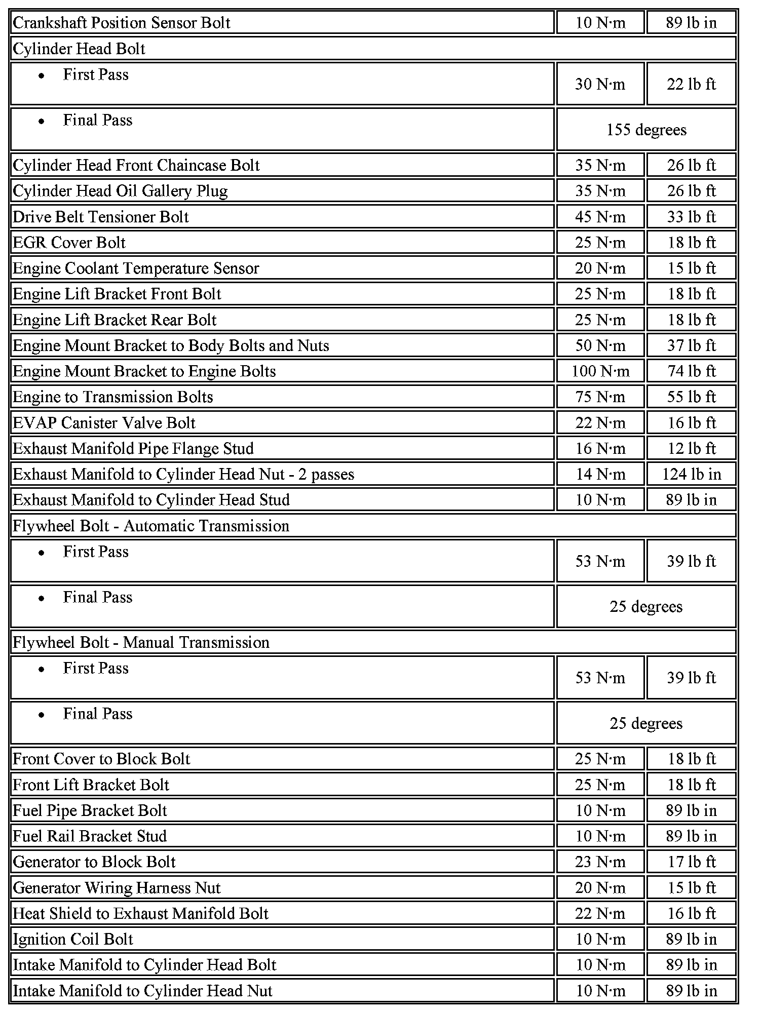 Fastener Tightening Specifications