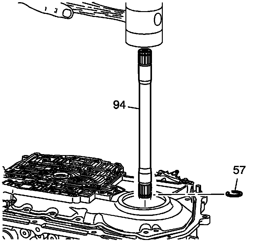 3. Install a new snap ring (57) into the output shaft snap ring groove.