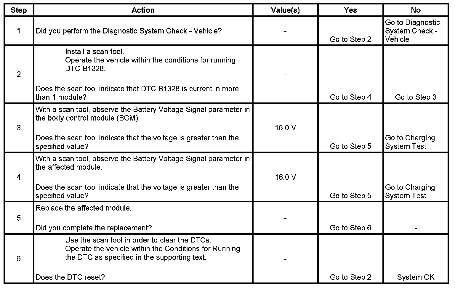 * The DTC will clear current status when the voltage is less than 15.5 volts for 1.2 seconds.