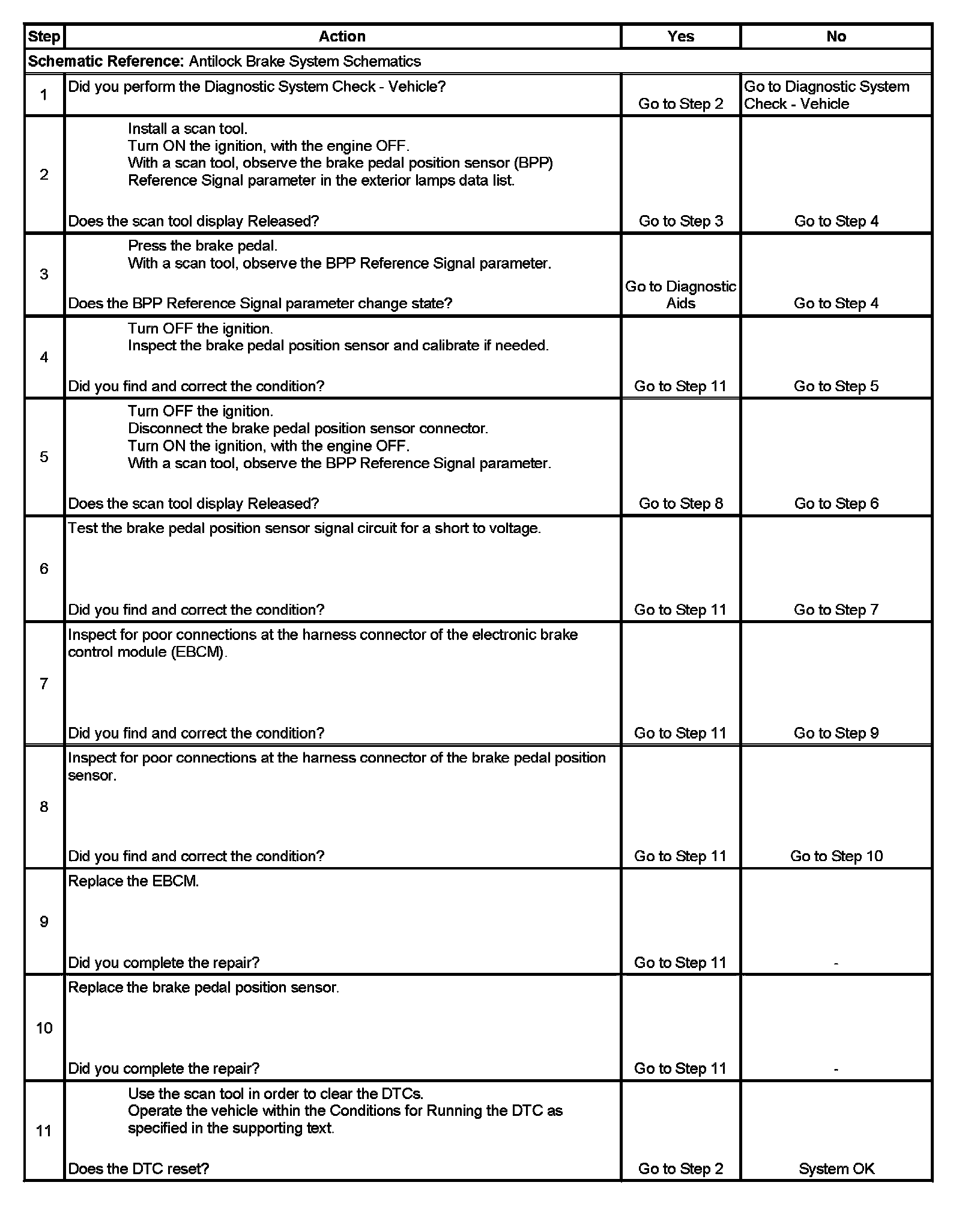 2. Test for the current state of the brake pedal position sensor.
