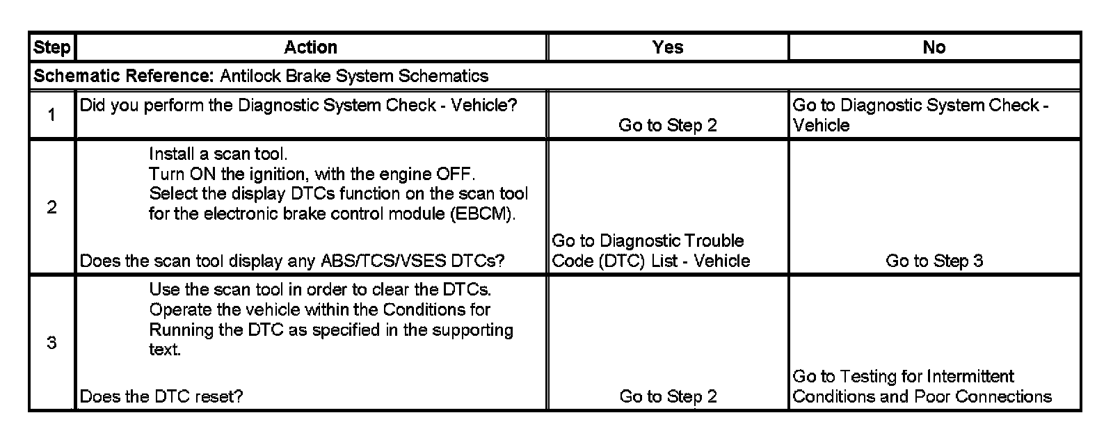 2. Verifies whether other ABS/TCS/VSES DTCs are set.
