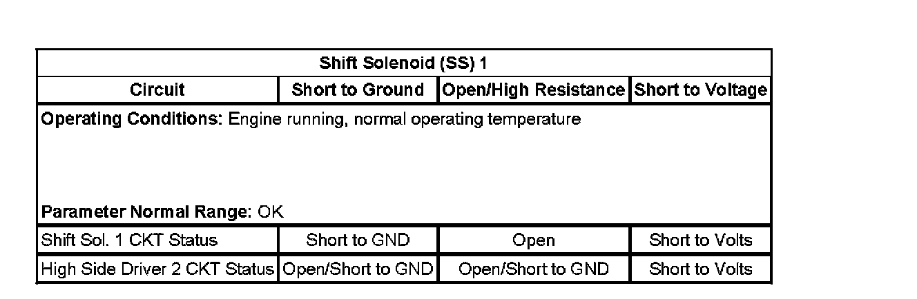 The control solenoid (w/body and TCM) valve assembly detects an internal low voltage electrical malfunction of the SS 1 control circuit when the SS 1 is commanded OFF for 300 milliseconds.