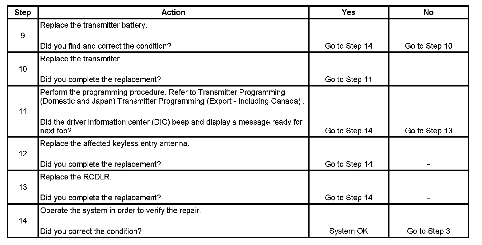 Keyless Entry System Inoperative (Passive)
