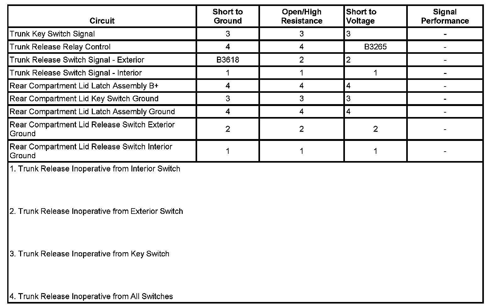 5. If all circuits test normal, test or replace the rear compartment lid key switch.