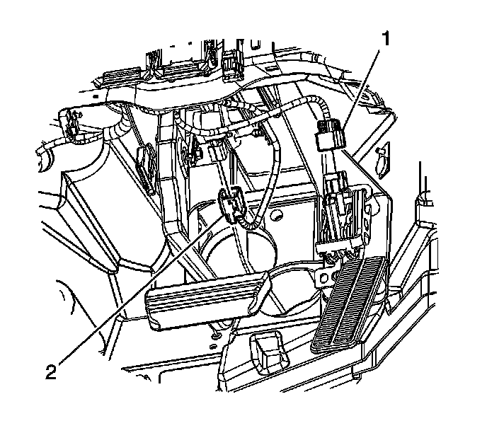 6. Connect the accelerator pedal position sensor (1) and brake apply sensor (2).