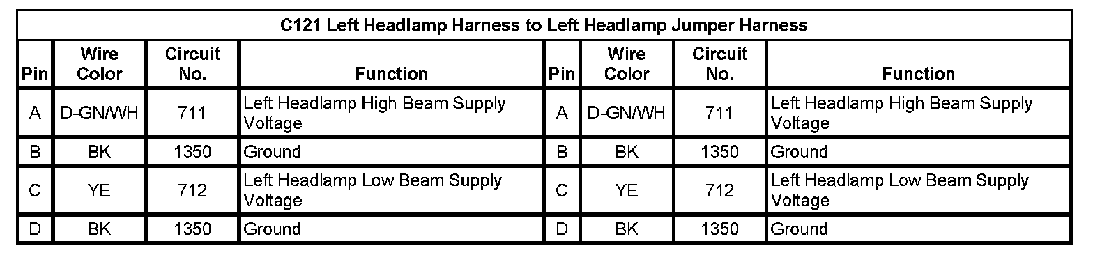 C121 Left Headlamp Harness to Left Headlamp Jumper Harness