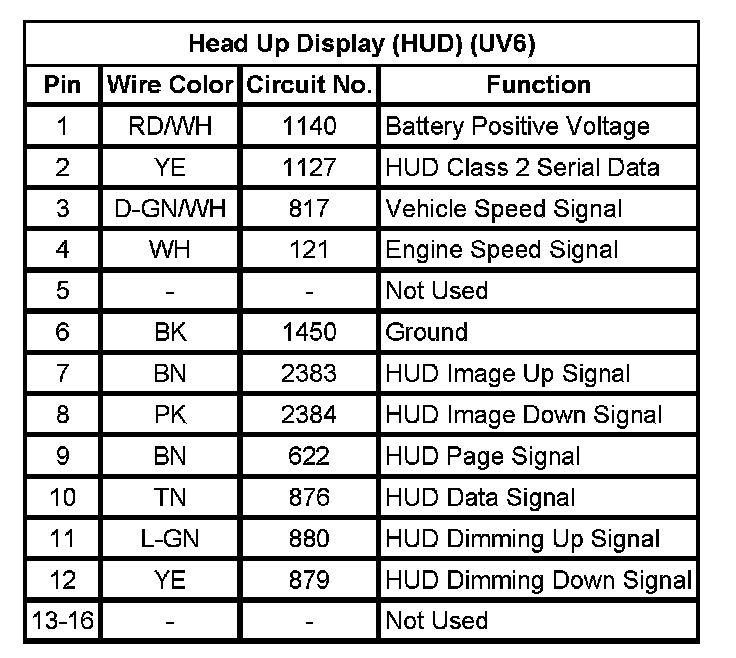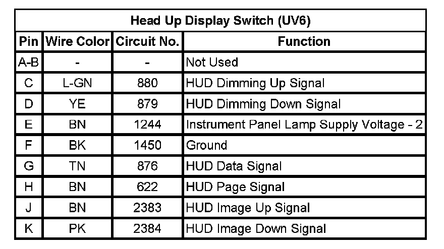 Head Up Display Switch (UV6)