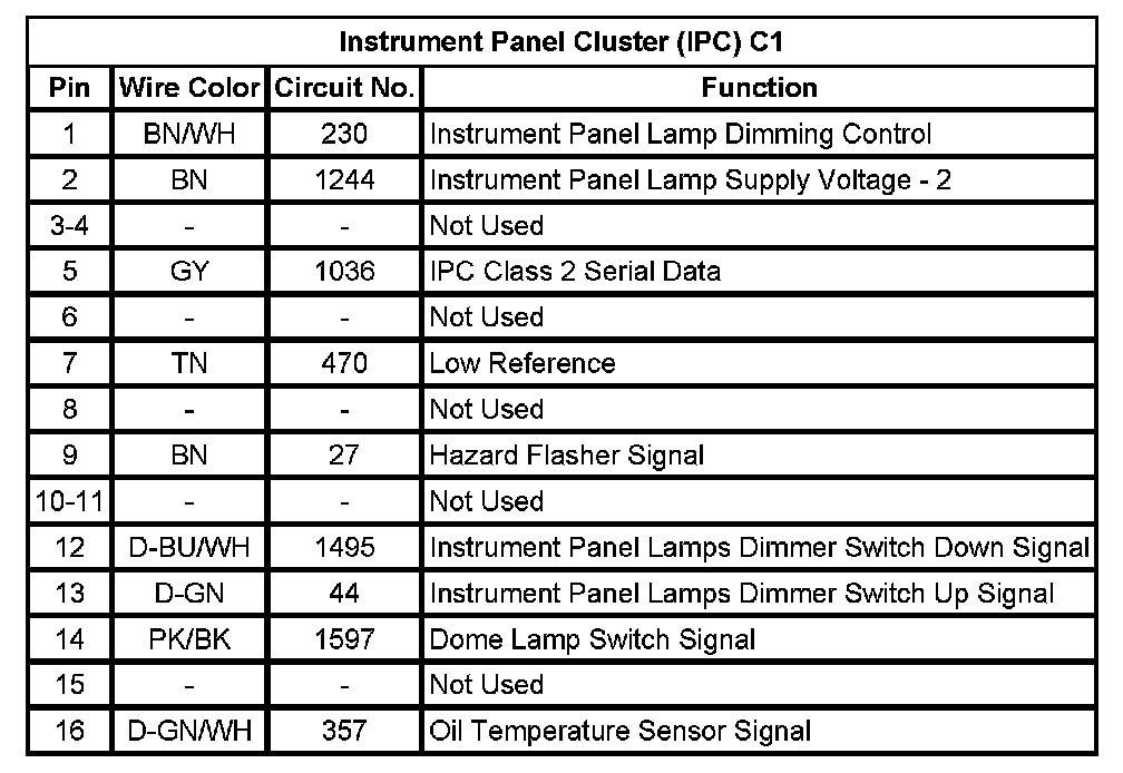 Instrument Panel Cluster (IPC) C1
