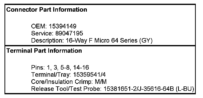 Displays and Gages Connector End Views