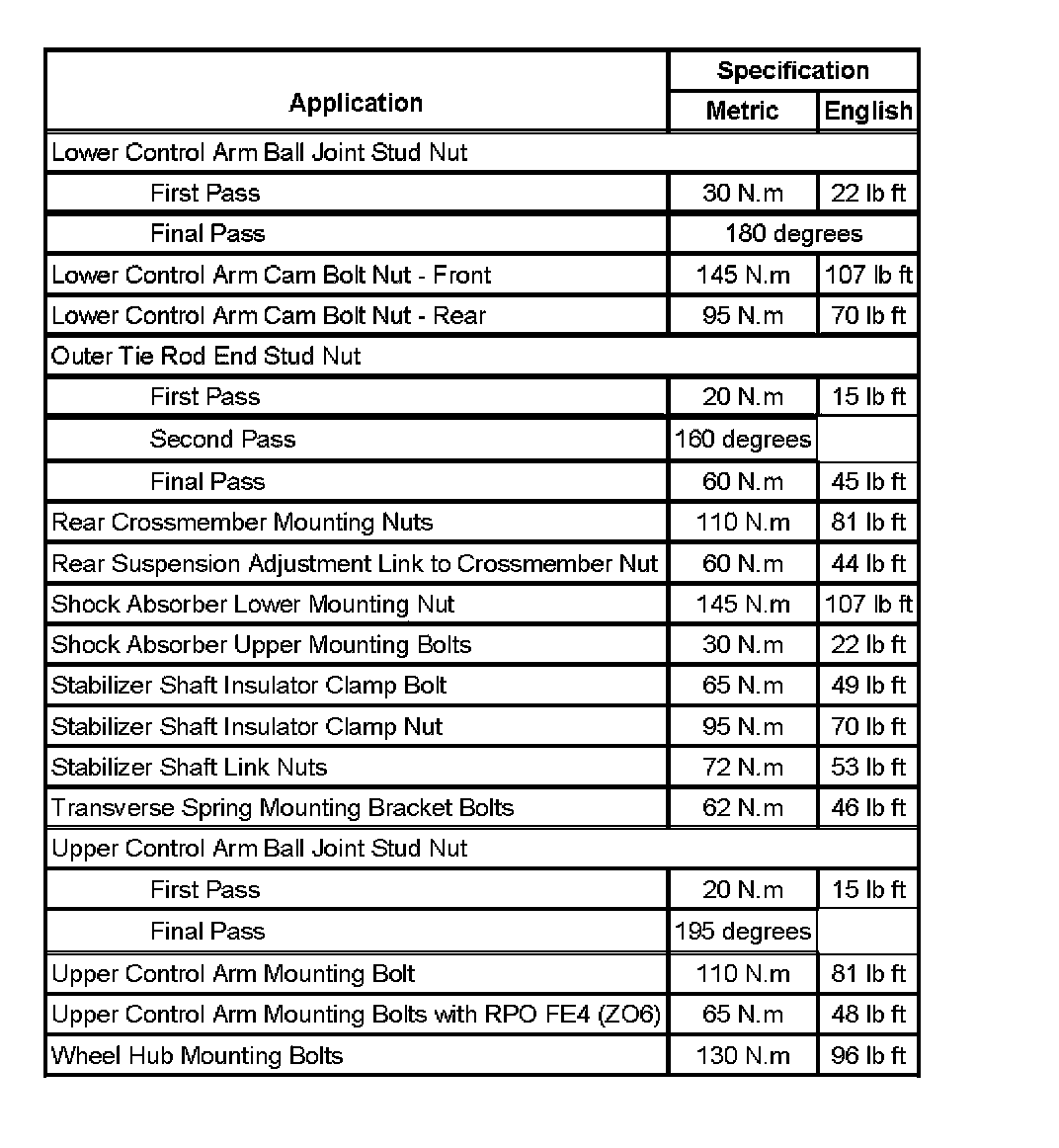 Fastener Tightening Specifications: