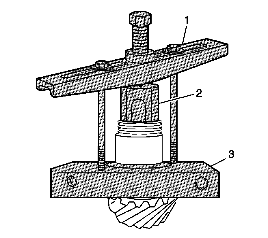 1. Remove the pinion nut using the J 42172 (1) and the J 42164 (2), or the DT-48007 for Z06 models.