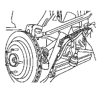 10. Separate the outer tie rod end from the knuckle and reposition the tie rod toward the rear of the vehicle. Refer to Tie Rod Replacement (Inner) in Rear Suspension.