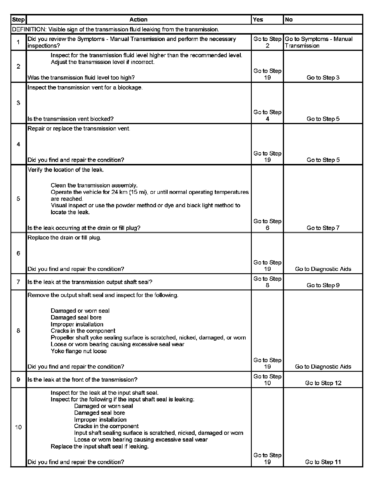 Using the incorrect type of transmission fluid may affect the sealing ability of the seals. Ensure the use of the correct type of transmission fluid. The incorrect type of sealer may not be compatible with the transmission fluid or may not have the correct characteristics for sealing the affected components. Ensure the use of the correct type of sealers. Refer to Sealers, Adhesives, and Lubricants.