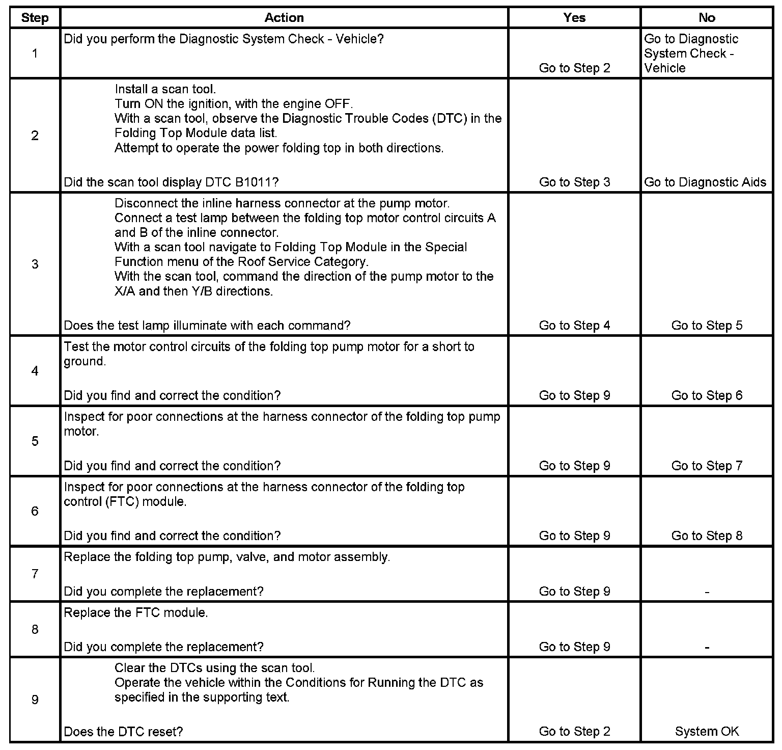 * The FTC module will suspend operation of the folding top pump motor.