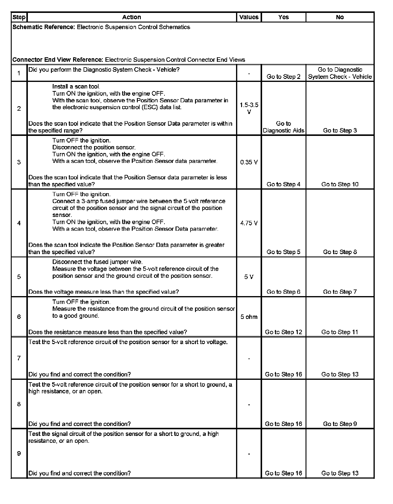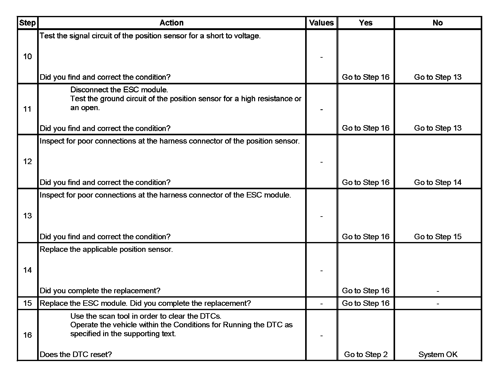 11. This step tests for an open or high resistance in the position sensor ground circuit.